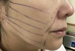 カウンセリングにて、お打合せ後施術部位にマーキングをします。手術には、気分をリラックスしていただくために、静脈注射をしてから局所麻酔をしております。2~3日で、主な腫れはおさまり、1~2週間ほどで、自然な感じになります。抜糸は1週間後ですが、炎症を避けるために患部を濡らさないようにすることが大切です。手術時間は、約60~90分です。